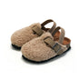 Dessa tofflor är designade med en mjuk fuskpälsfoder och en robust korkyta som ger både komfort och säkerhet. Den elastiska remmen baktill säkerställer en perfekt passform, vilket gör dem ideala för småfötter som lär sig att gå.